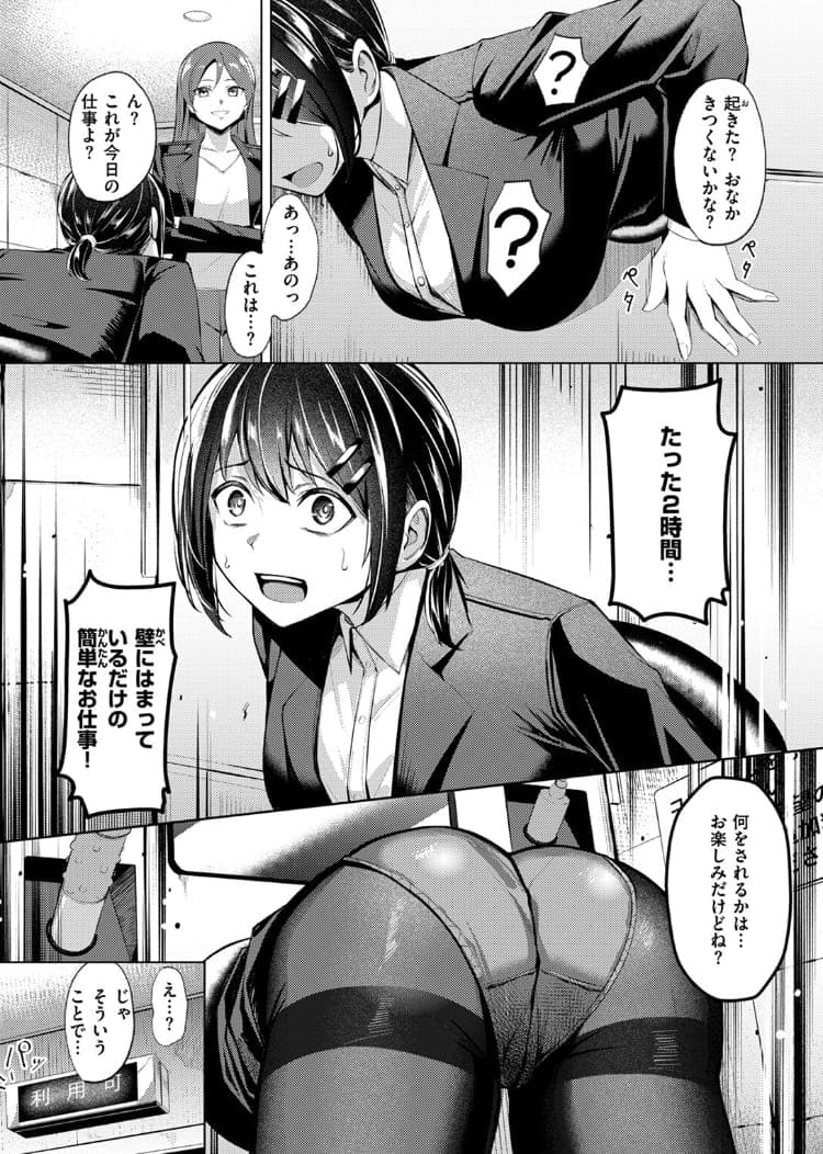 そのアルバイトは「壁尻」と呼ばれる特殊な仕事で、壁に身体を固定された状態で見知らぬ客から性的なサービスを提供するというものだった。